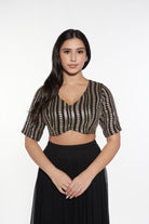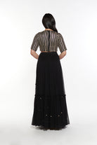Shine in our Golden Hour Lehenga! This stunning ensemble features a zardozi embroidered crop top and a tiered georgette skirt with sequin detailing. The lightweight dupatta adds the perfect touch of elegance.