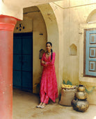 Be Bold. This tunic set is crafted in luxe dupion silk with intricate bandhej prints and hand-embroidered details. The asymmetrical hem adds a modern edge. Paired with cropped pants for added style.